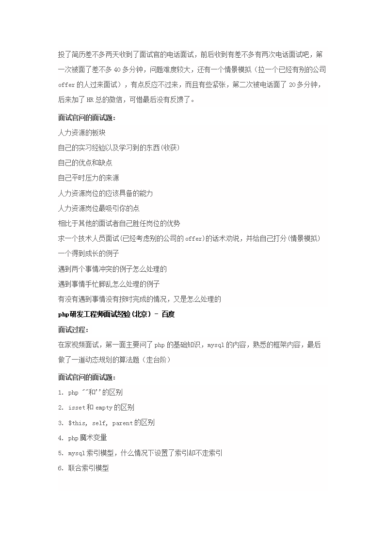 【文档名称】 百度公司招聘面试试题及面试过程(Word版).doc