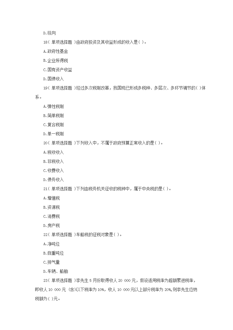 【文档名称】 2011年初级经济师财政税收考试真题(Word版).doc