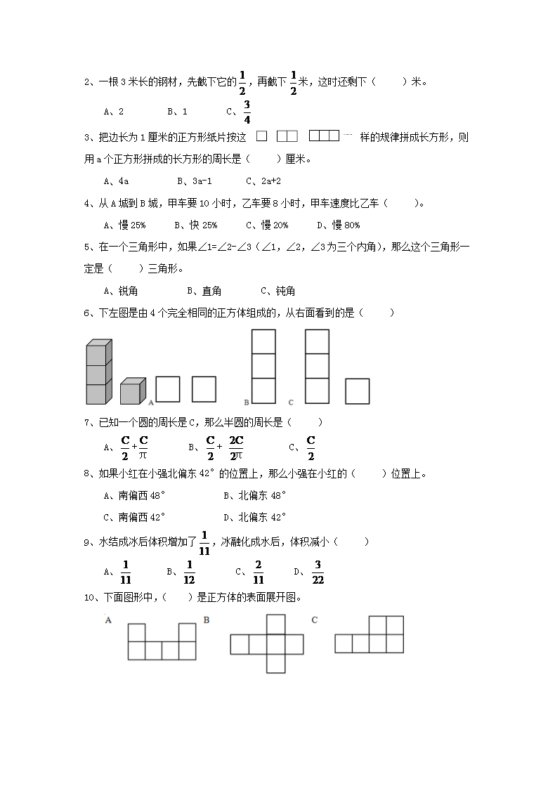 【文档名称】 2014年广东小升初数学真题及答案(Word版).doc