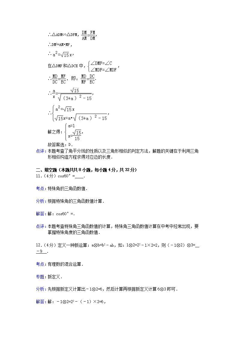 【文档名称】 2014年贵州省铜仁市中考数学试题及答案(Word版).doc