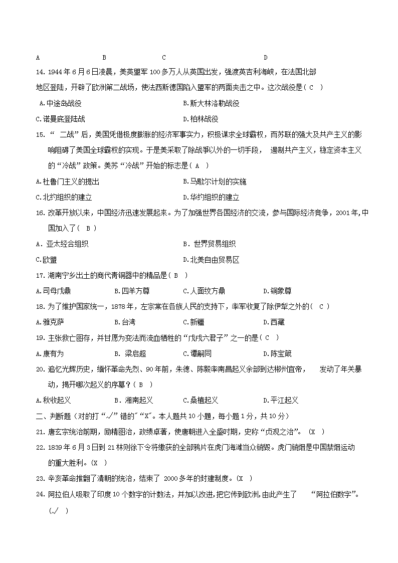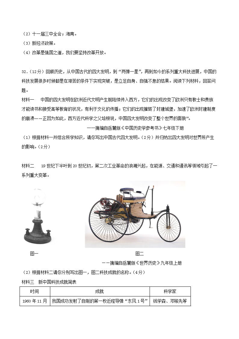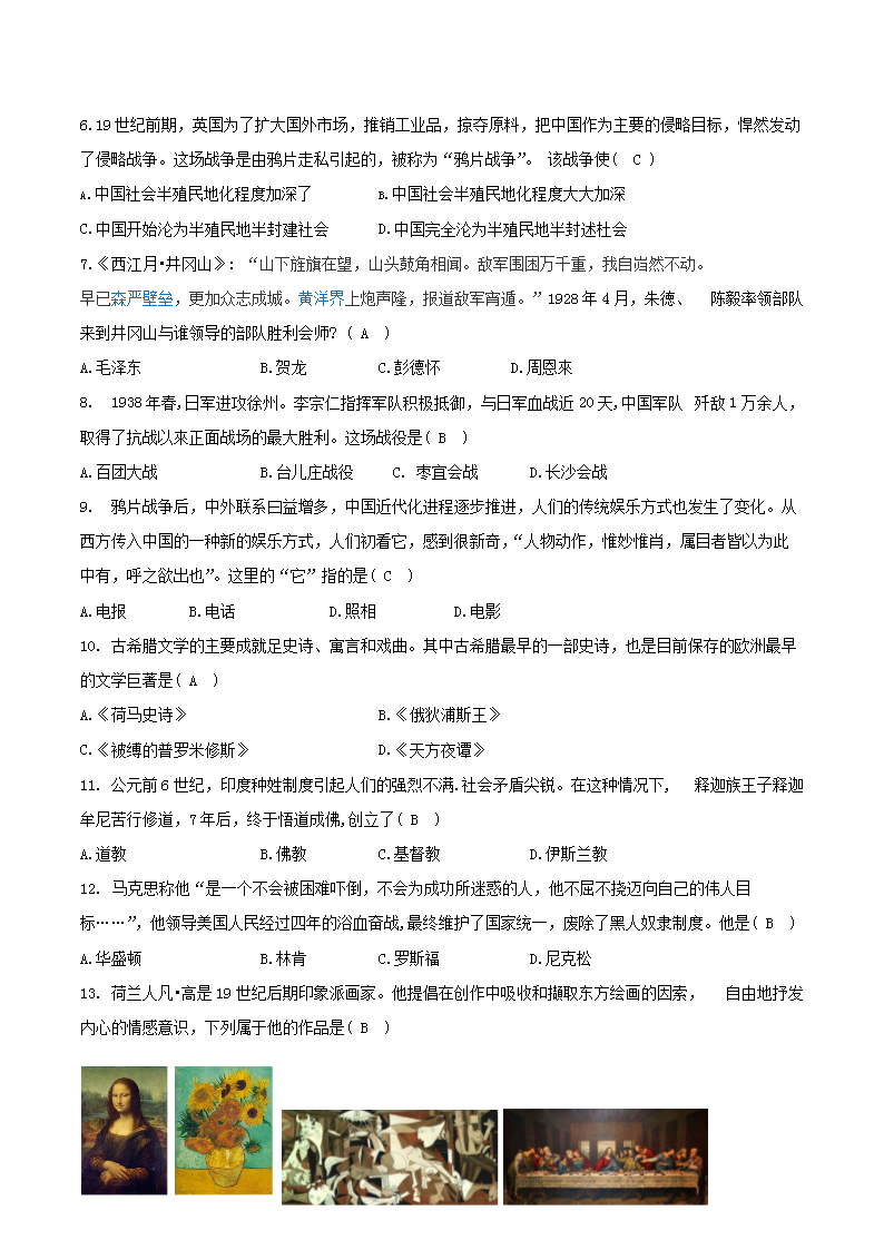 【文档名称】 2018年湖南省郴州市中考历史真题及答案(Word版).doc