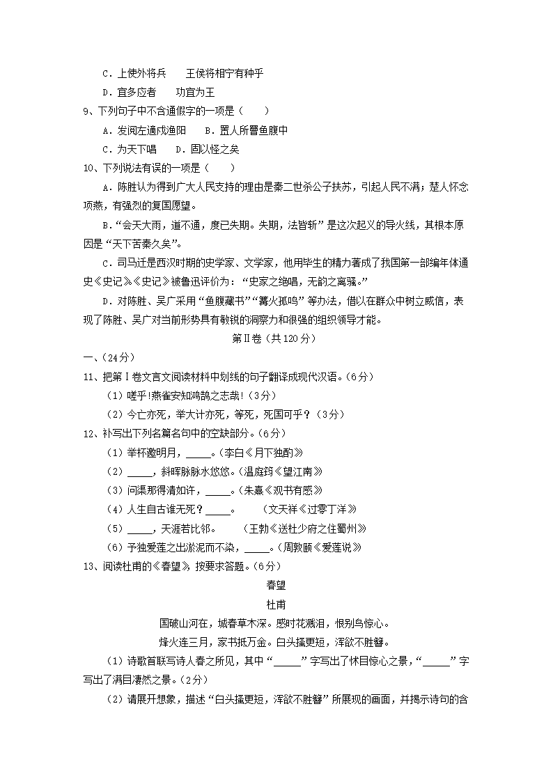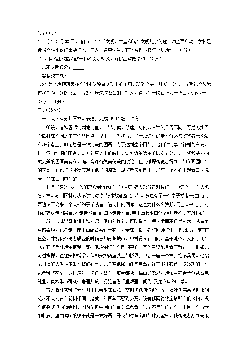 【文档名称】 2014年贵州省铜仁市中考语文试题及答案(Word版).doc