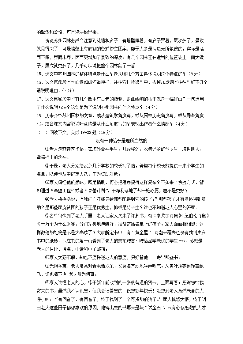 【文档预览】 无忧考网整理发布2014年贵州省铜仁市中考语文试题及答案(Word版),前五页预览如下: