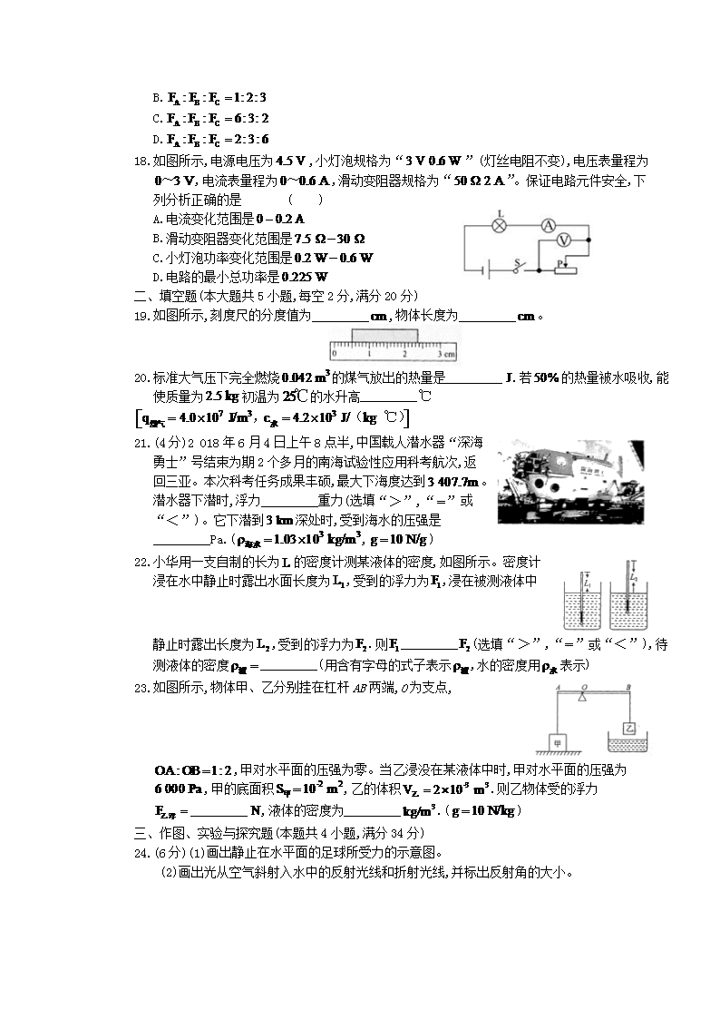 【文档名称】 2018年湖南省郴州市中考物理真题及答案(Word版).doc