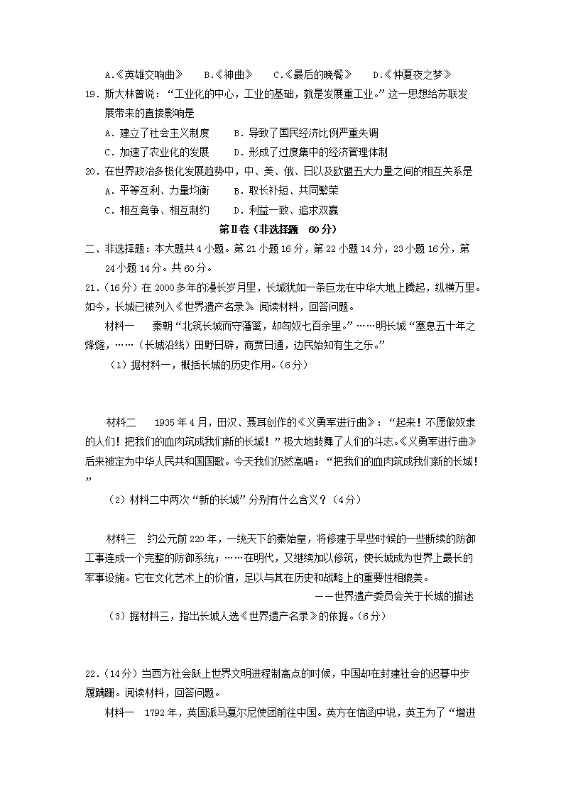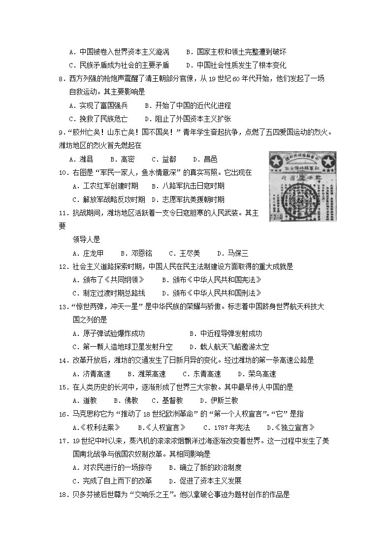 【文档名称】 2010山东省潍坊市中考历史真题及答案(Word版).doc
