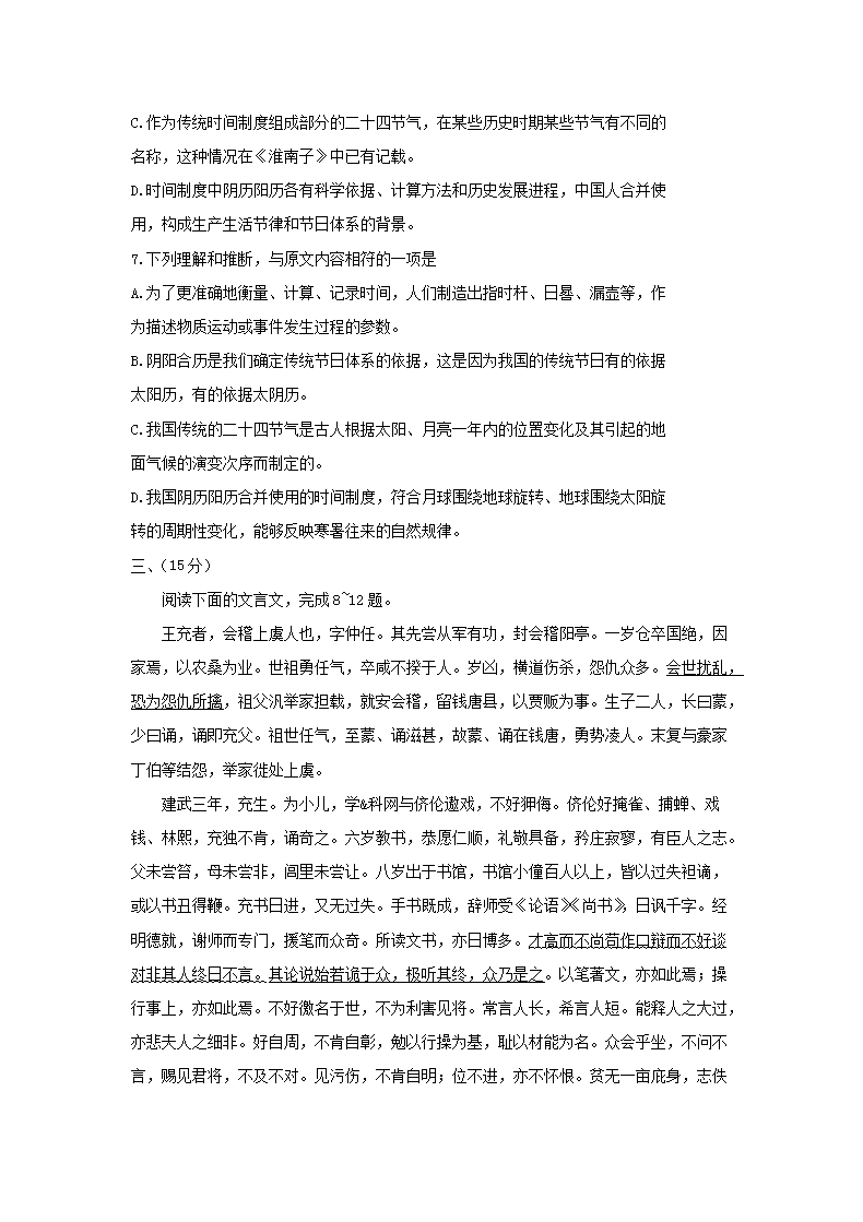 【文档名称】 2017年天津普通高中会考语文真题及答案(Word版).doc