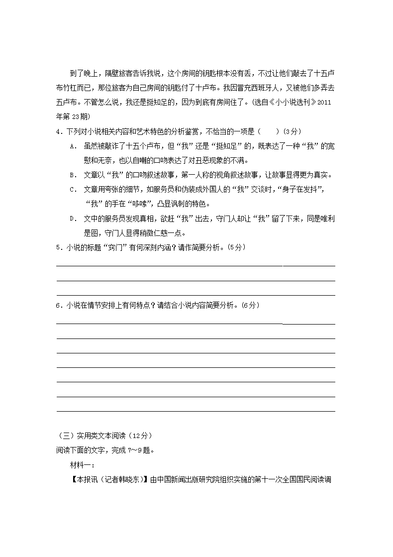 【文档名称】 2017年福建普通高中会考语文真题及答案(Word版).doc