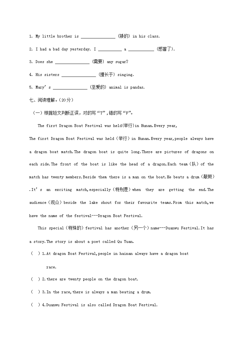 【文档名称】 2017年湖南小升初英语真题及答案(Word版).doc