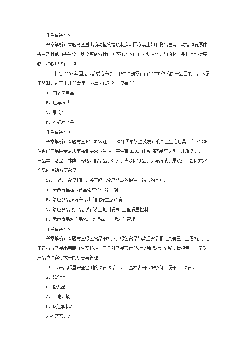 【文档名称】 2011年中级经济师农业考试真题及答案(Word版).doc