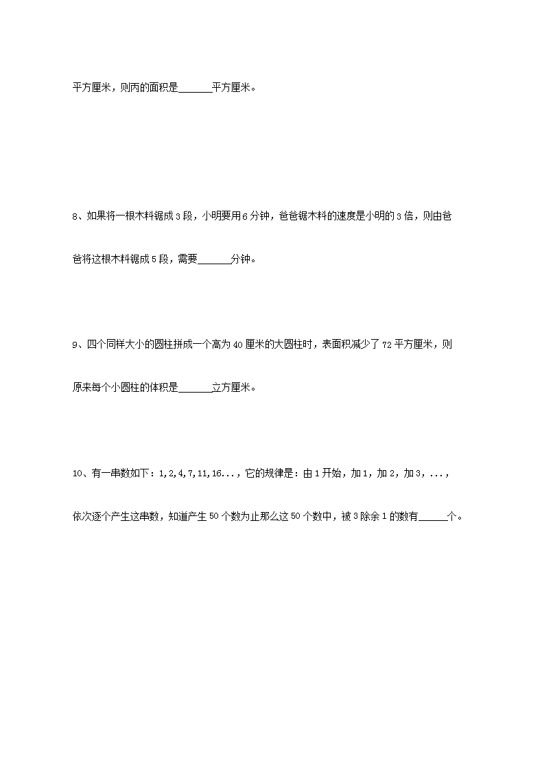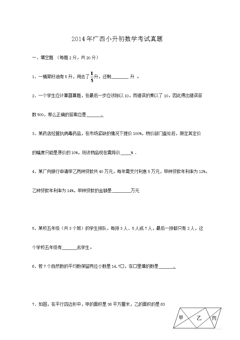 【文档名称】 2014年广西小升初数学考试真题(Word版).doc