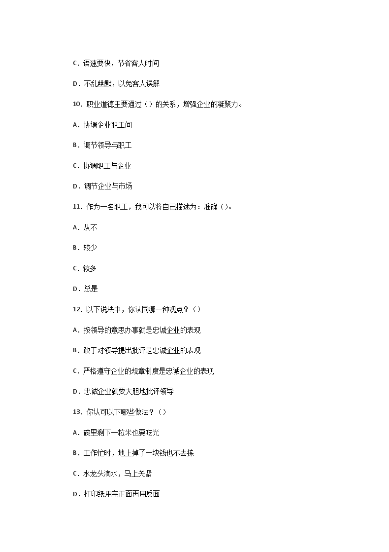 【文档名称】 2003年7月二级人力管理师职业道德真题(Word版).doc