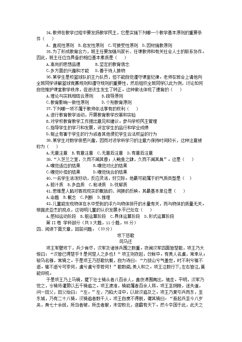 【文档名称】 2012湖北武汉市教育局公开招聘新教师考试中学语文真题(Word版).doc