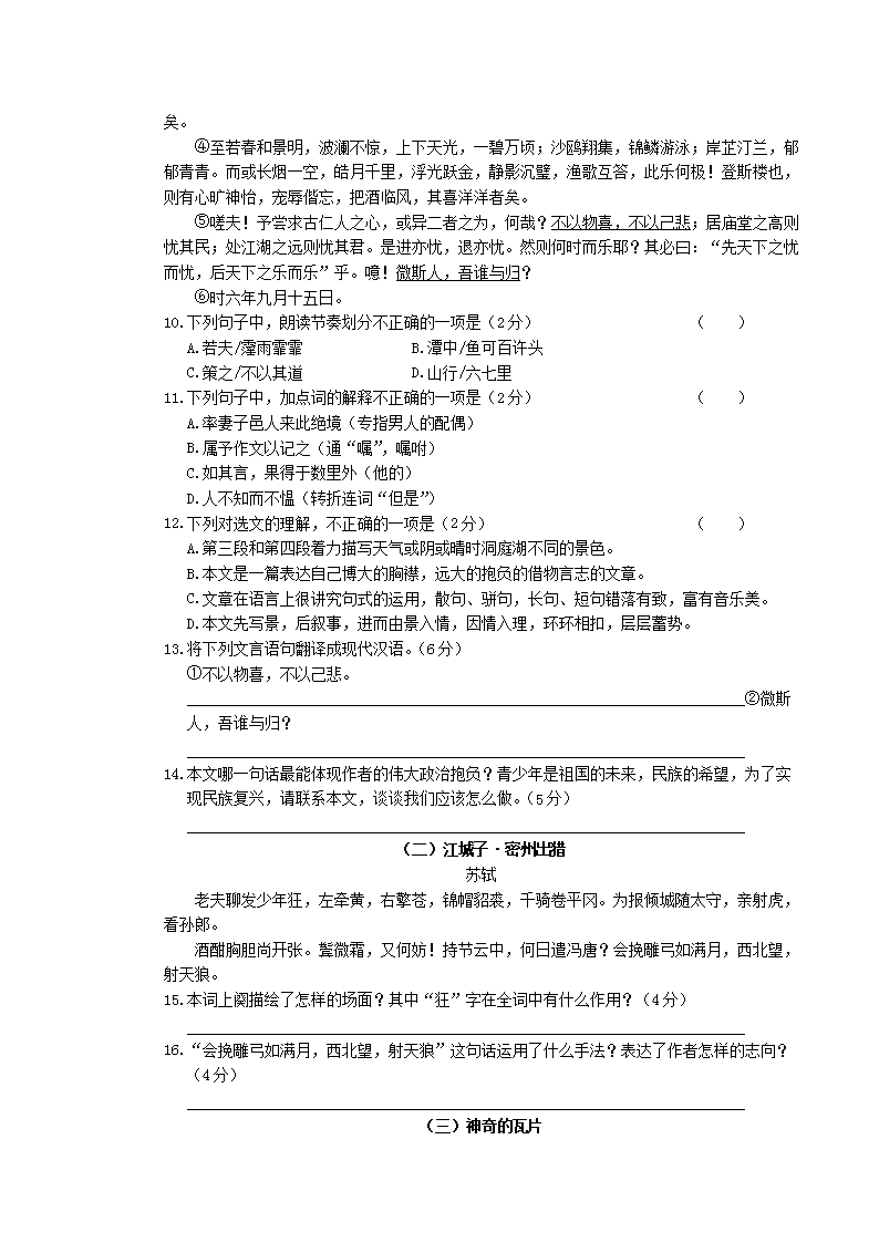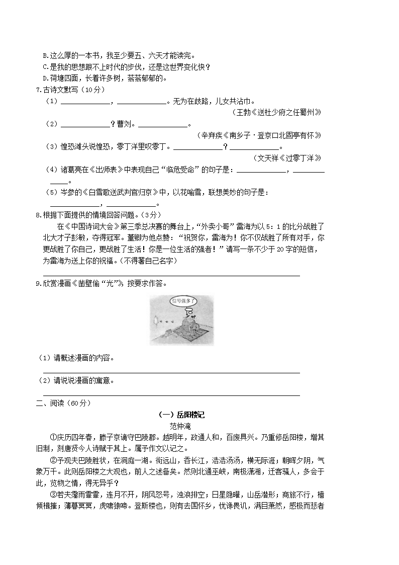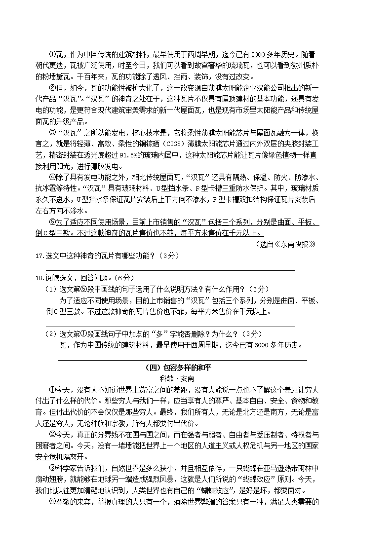 【文档名称】 2018年湖南省娄底市中考语文真题及答案(Word版).doc