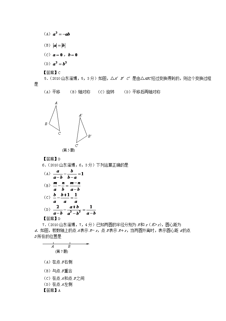 【文档名称】 2010山东省淄博市中考数学真题及答案(Word版).doc