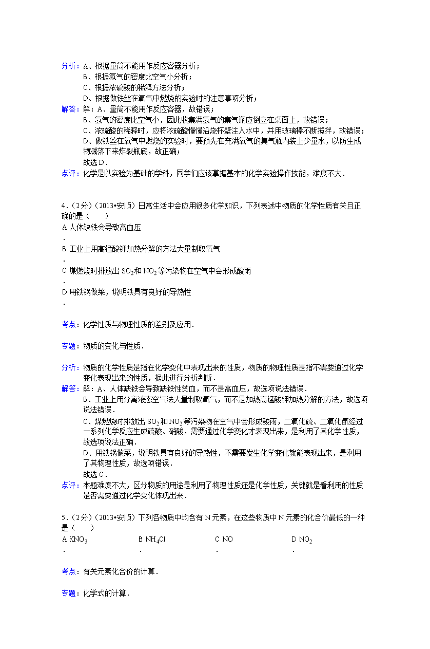 【文档预览】 无忧考网整理发布2013年贵州省安顺市中考化学试题及答案(Word版),前五页预览如下: