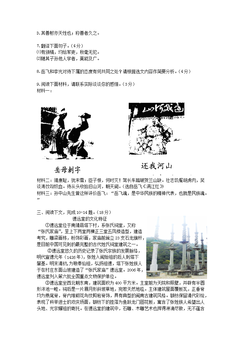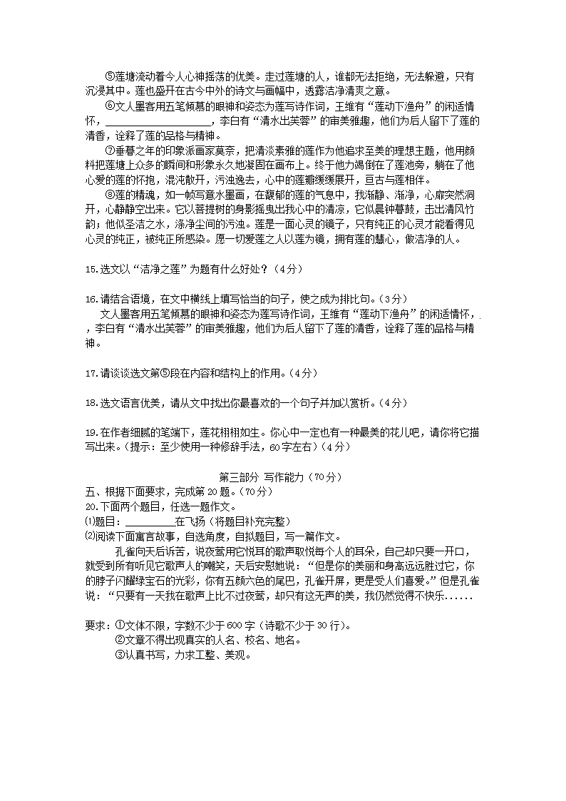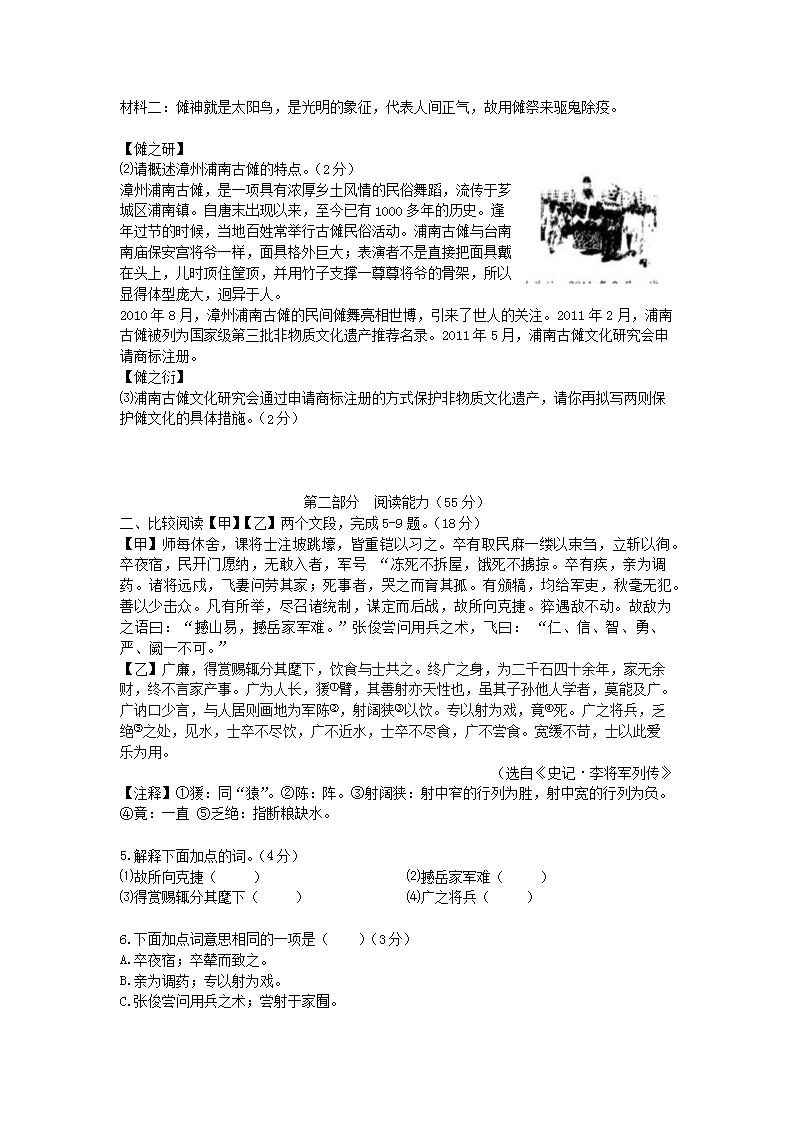 【文档预览】 无忧考网整理发布2011年福建省漳州市中考语文真题(Word版),前五页预览如下: