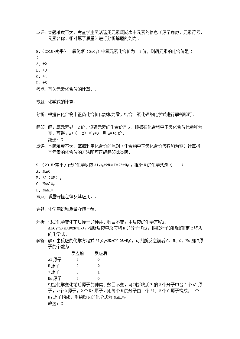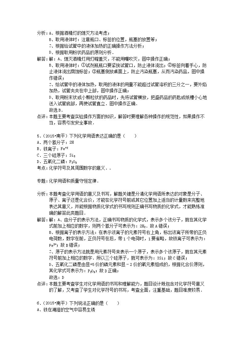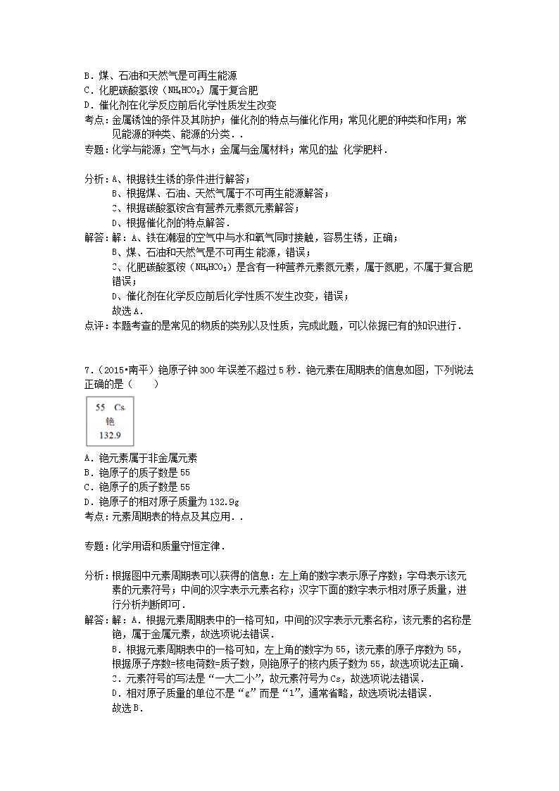 【文档名称】 2015年福建省南平市中考化学真题及答案(Word版).doc
