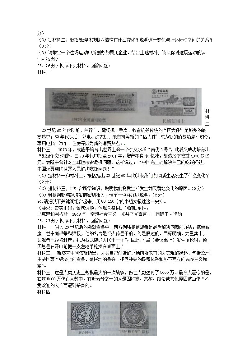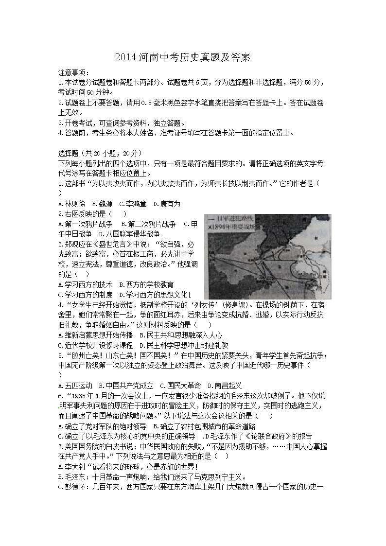【文档名称】 2014河南中考历史真题及答案(Word版).doc