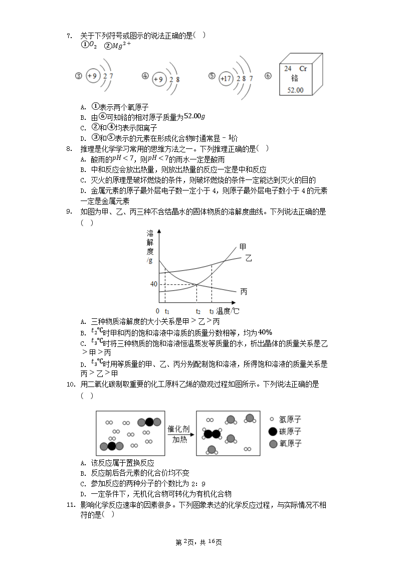 【文档预览】 无忧考网整理发布2019宁夏中考化学真题及答案(Word版),前五页预览如下: