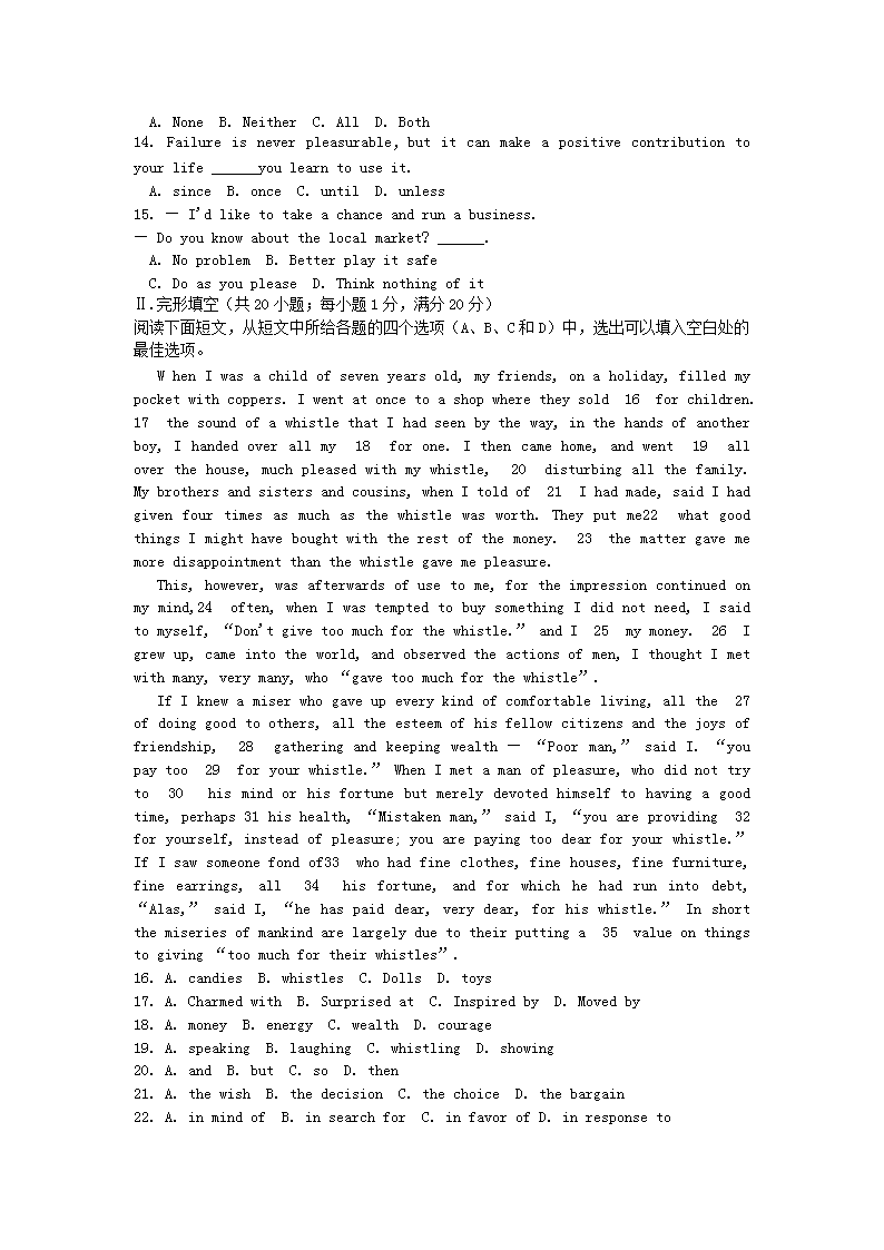 【文档预览】 无忧考网整理发布2013年贵州贵阳高中教师招聘考试英语真题及答案(Word版),前五页预览如下: