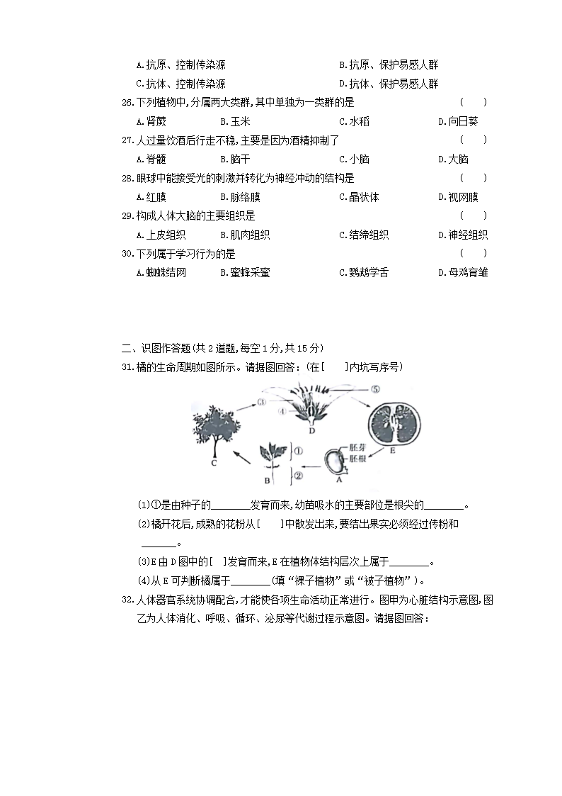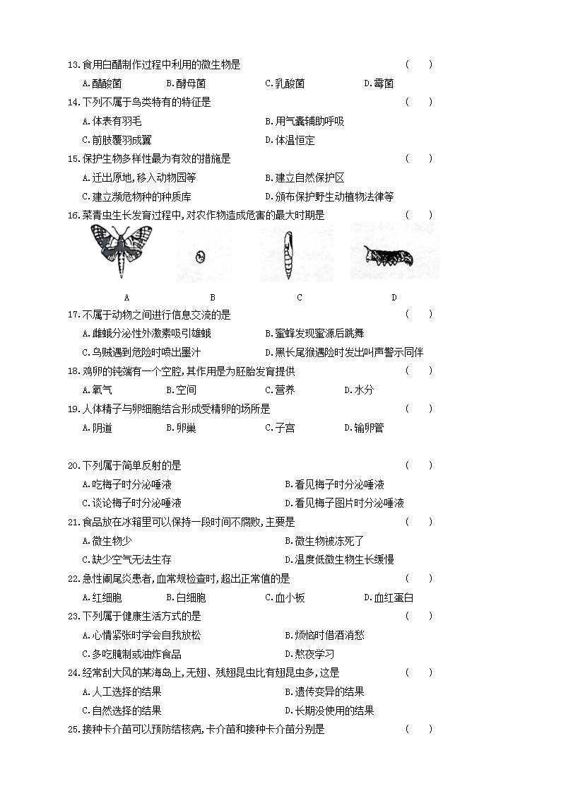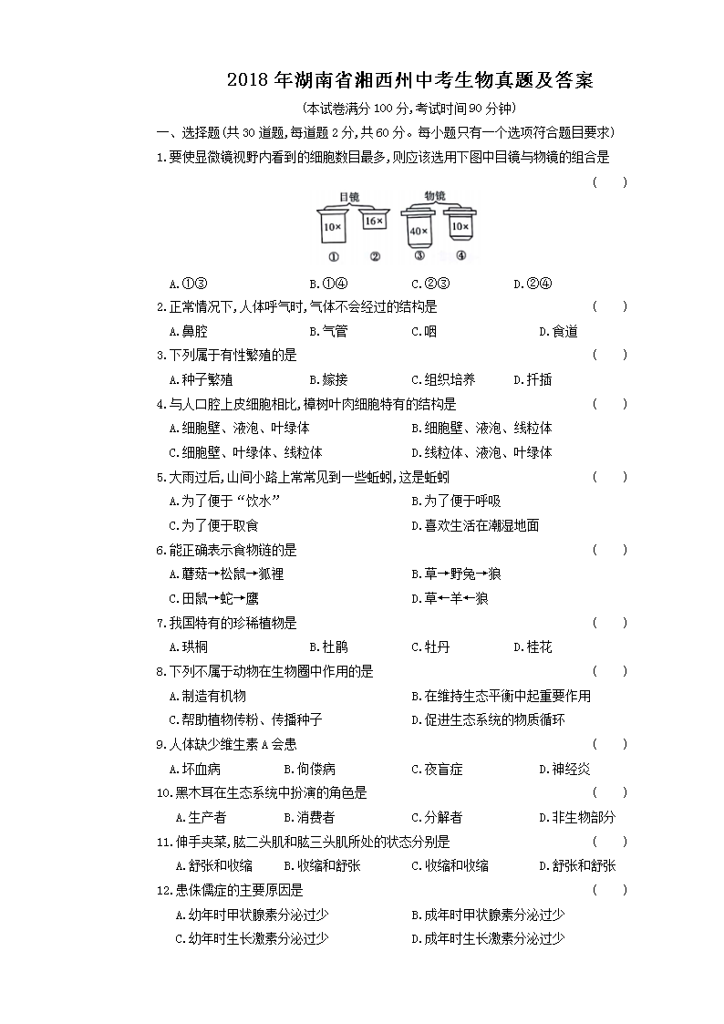 【文档名称】 2018年湖南省湘西州中考生物真题及答案(Word版).doc
