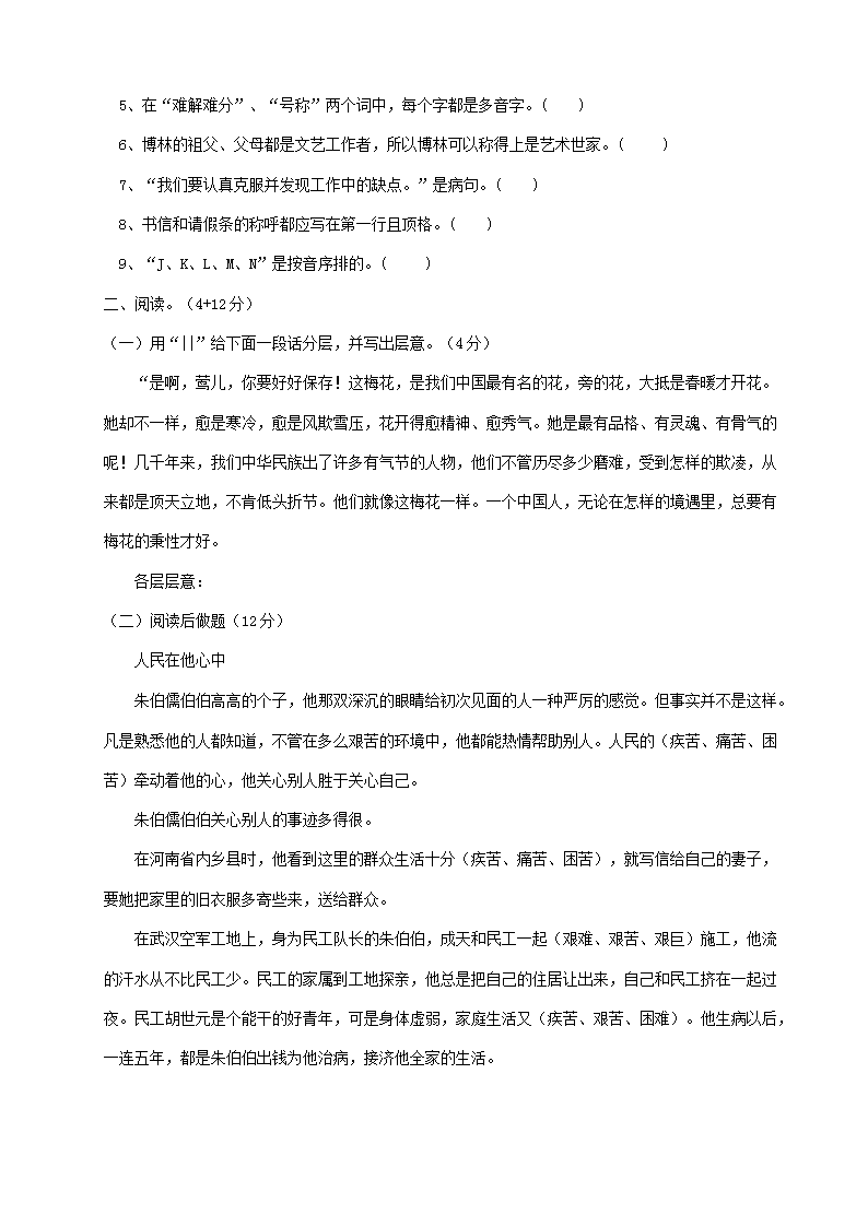 【文档名称】 2010年四川小升初语文考试真题(Word版).doc