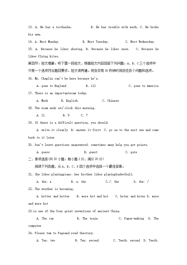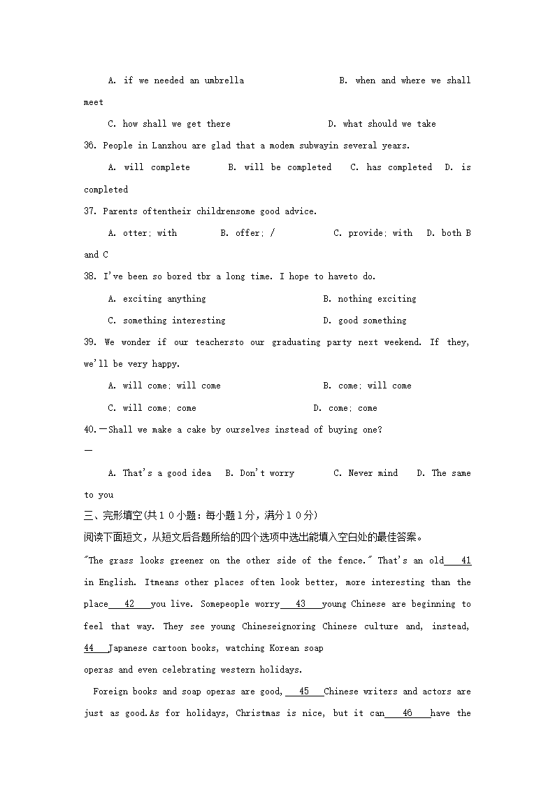 【文档名称】 2014年甘肃省兰州市中考英语真题试题及答案(Word版).doc