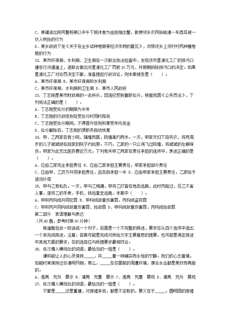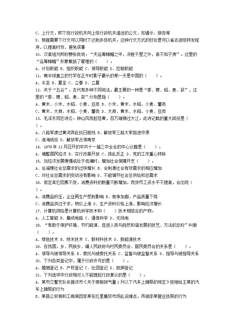【文档名称】 2009年湖南选调生考试行测真题及答案(Word版).doc