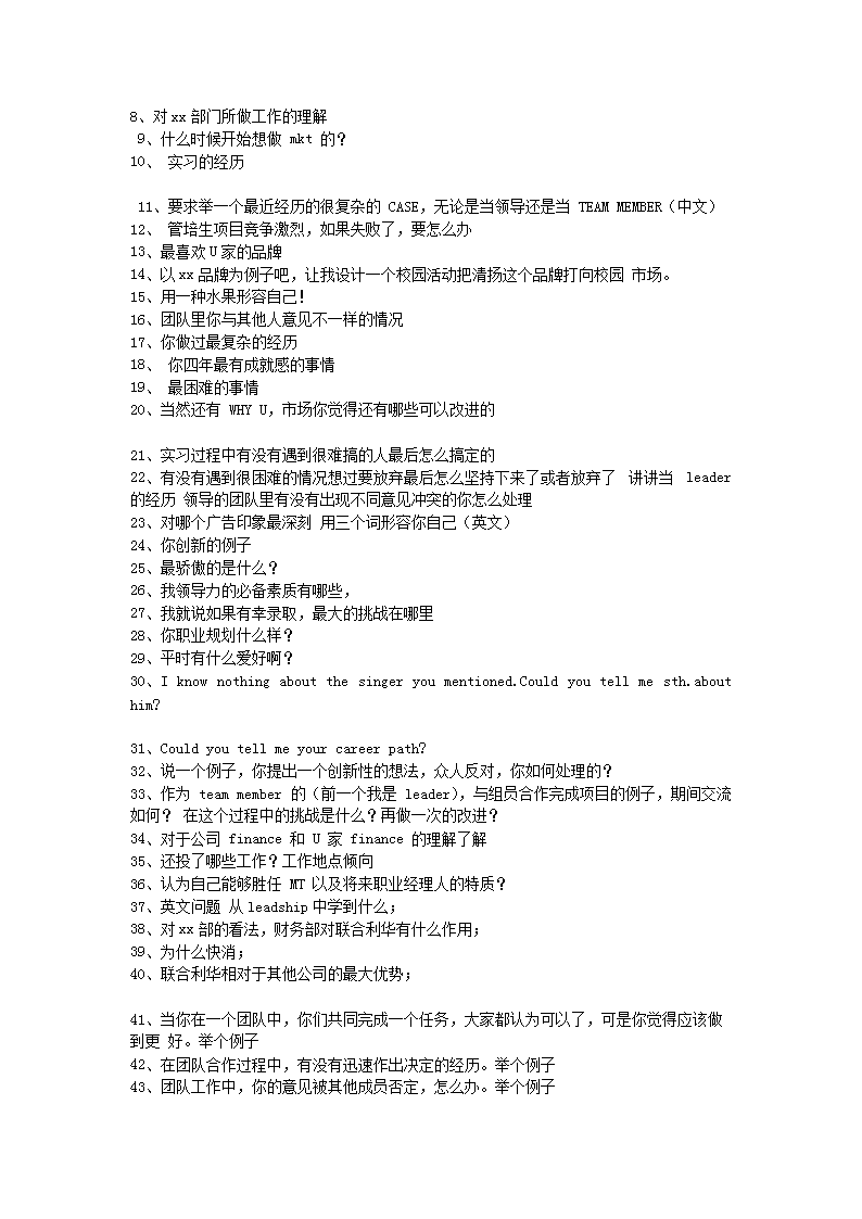 【文档名称】 联合利华中英文面试试题汇总(Word版).doc