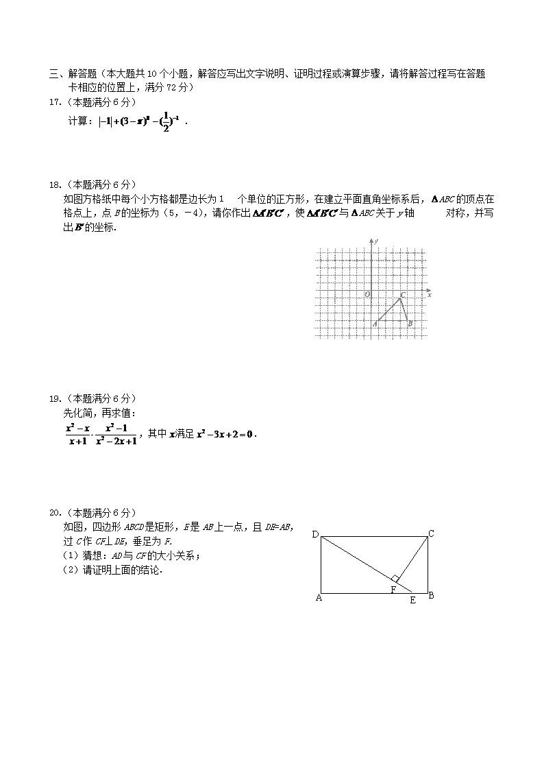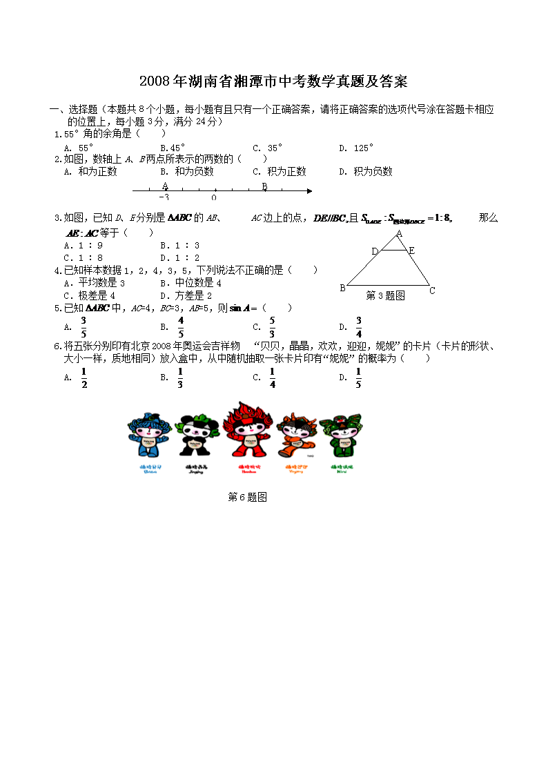 【文档预览】 无忧考网整理发布2008年湖南省湘潭市中考数学真题及答案(Word版),前五页预览如下:
