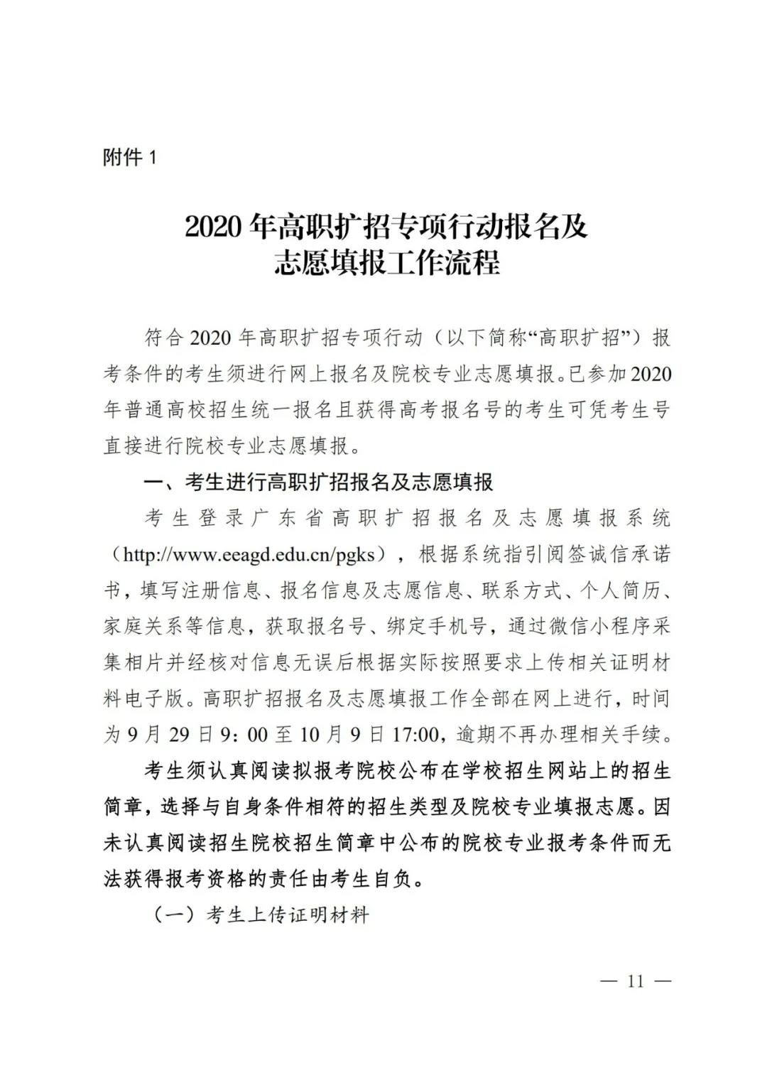 附件:1.广东省2020年高职扩招高考报名及志愿填报流程