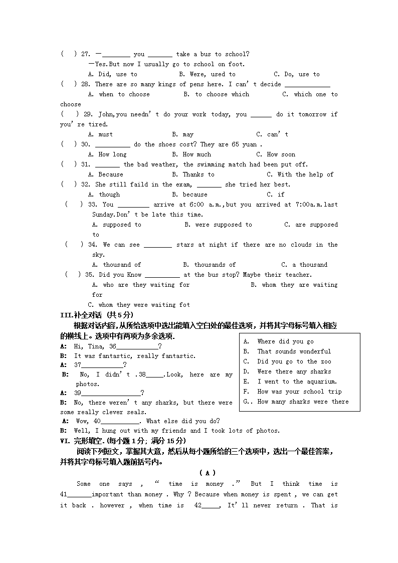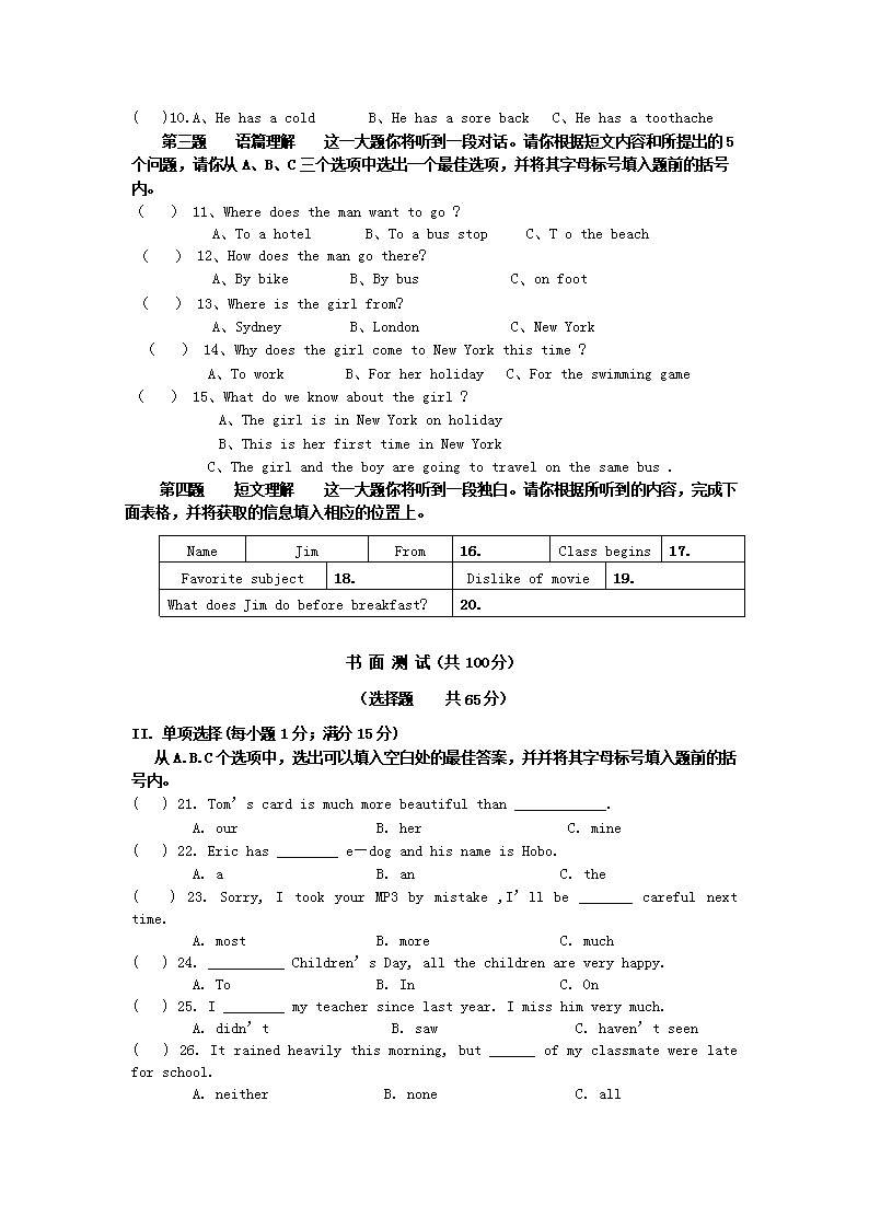 【文档名称】 2007年山西省中考英语真题及答案(Word版).doc