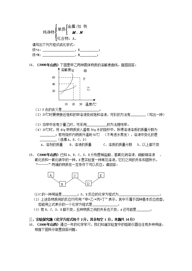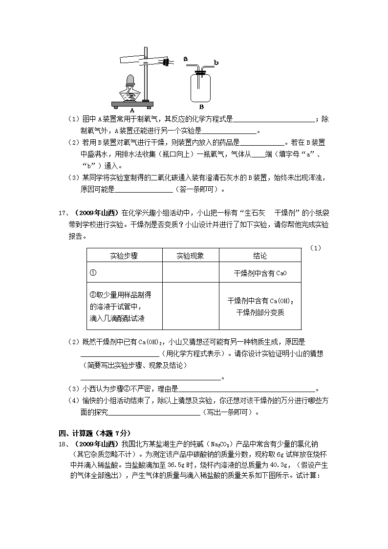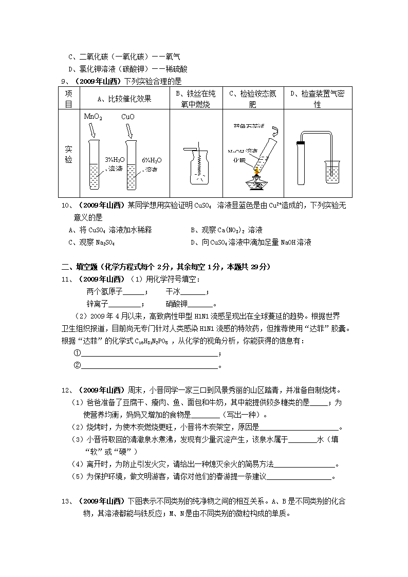 【文档名称】 2009年山西省中考化学真题及答案(Word版).doc