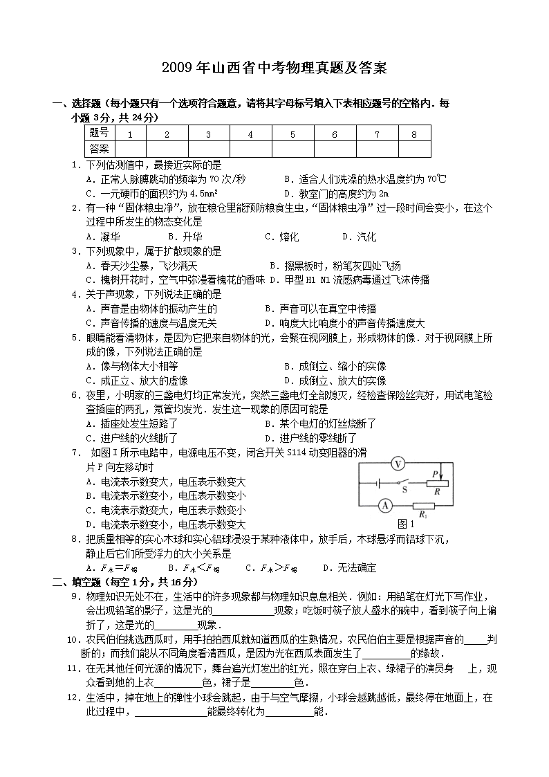【文档名称】 2009年山西省中考物理真题及答案(Word版).doc