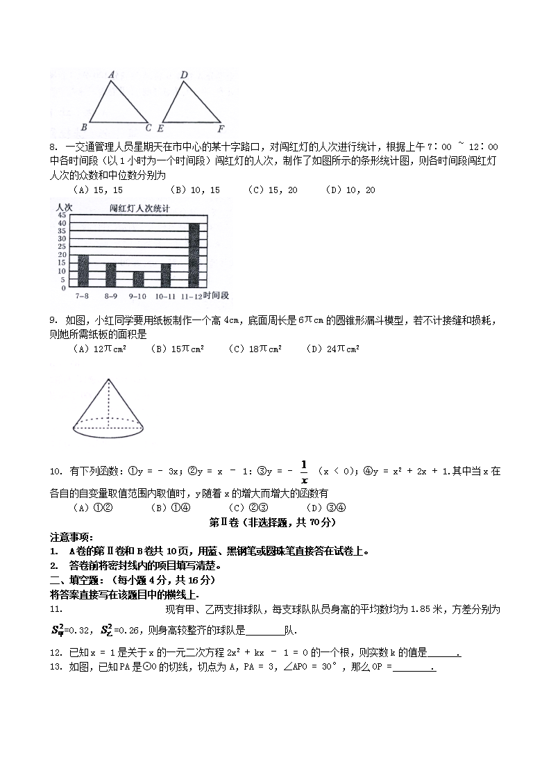 【文档名称】 2008年四川省成都市中考数学真题及答案(Word版).doc