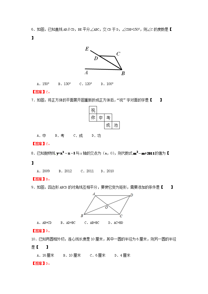 【文档预览】 无忧考网整理发布2012年贵州省黔南州中考数学试题及答案(Word版),前五页预览如下: