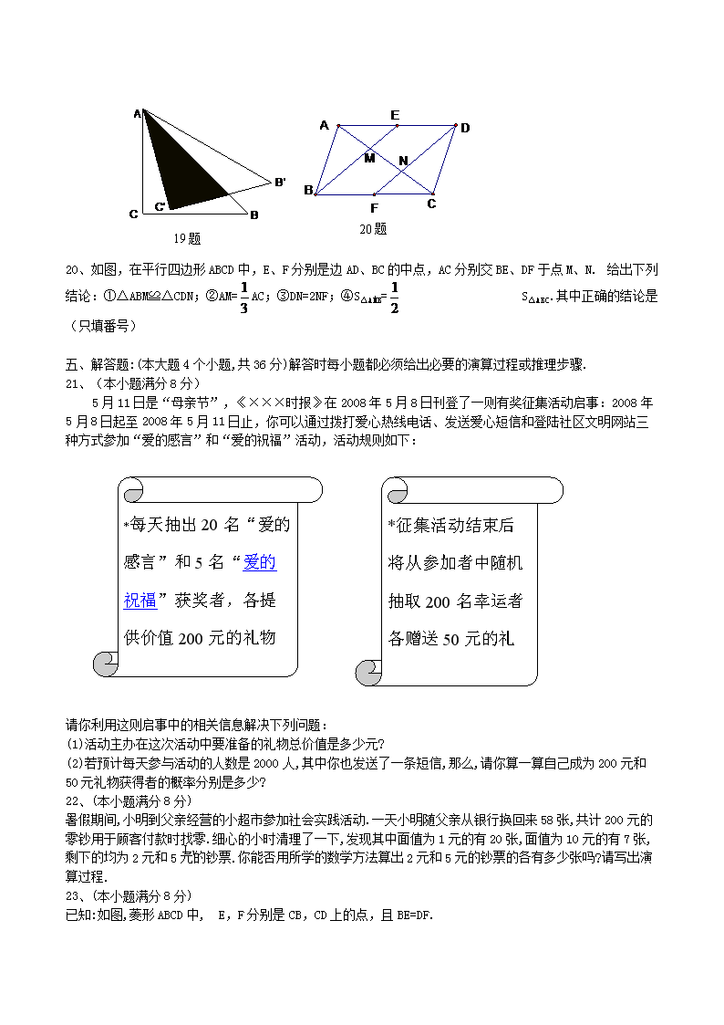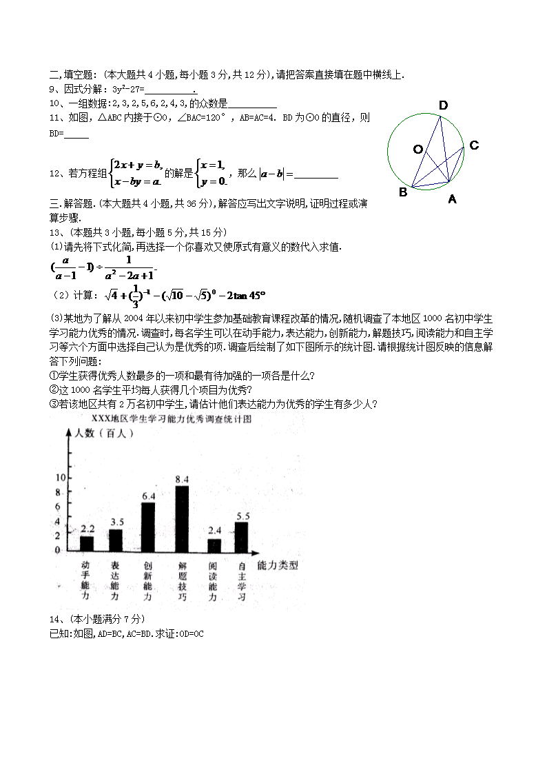 【文档预览】 无忧考网整理发布2008年四川省宜宾市中考数学真题及答案(Word版),前五页预览如下: