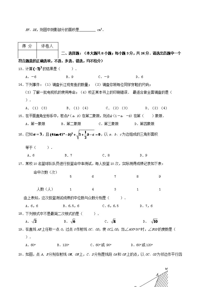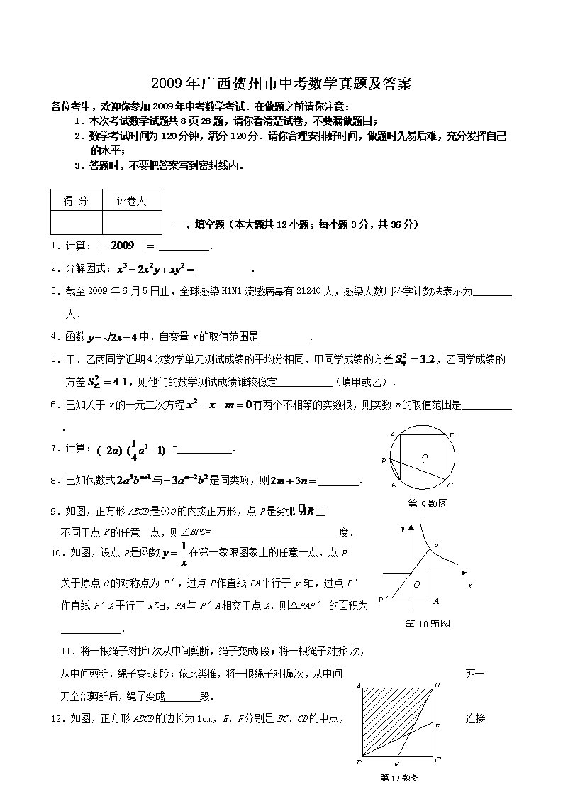 【文档名称】 2009年广西贺州市中考数学真题及答案(Word版).doc