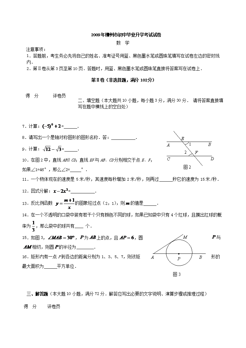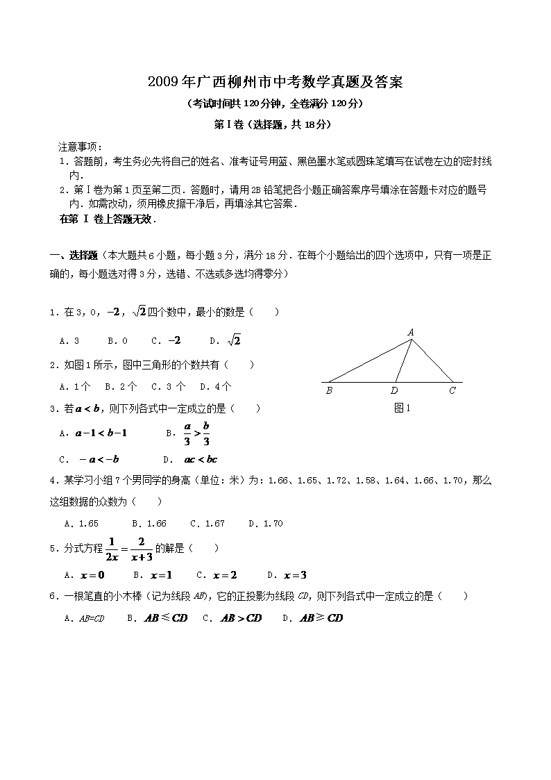 【文档名称】 2009年广西柳州市中考数学真题及答案(Word版).doc