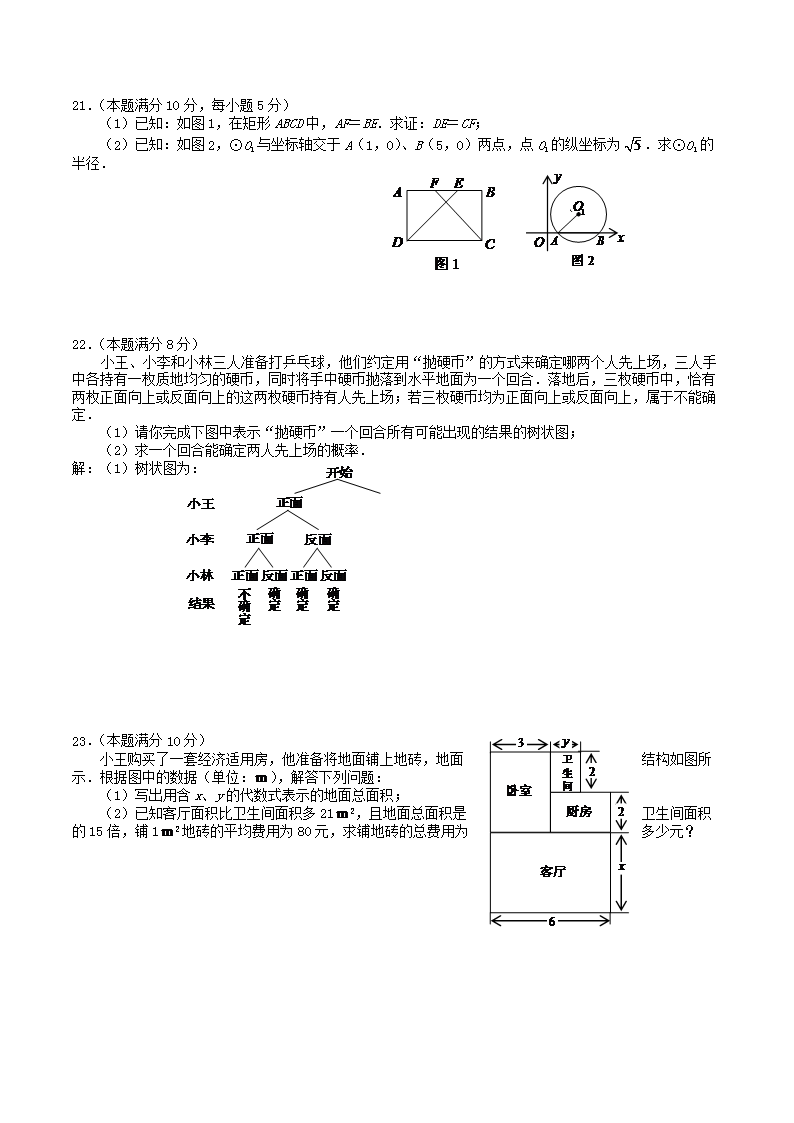 【文档预览】 无忧考网整理发布2009年广西钦州市中考数学真题及答案(Word版),前五页预览如下: