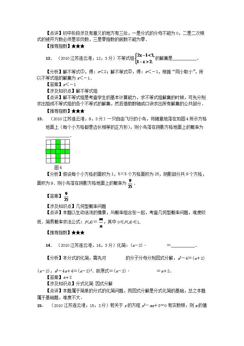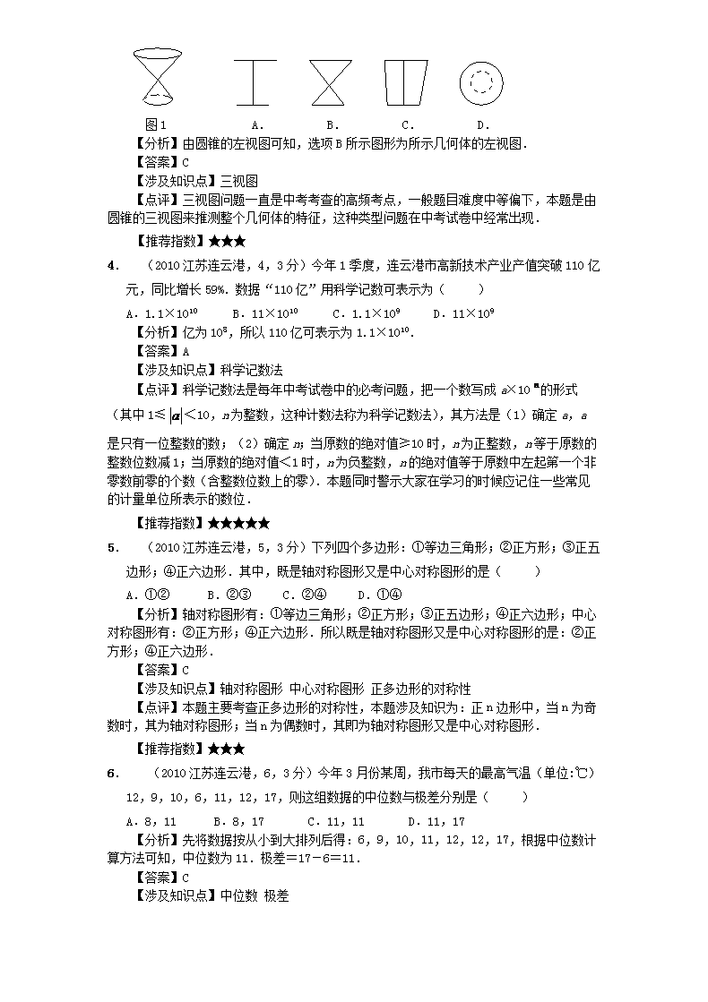 【文档预览】 无忧考网整理发布2010江苏省连云港市中考数学真题及答案(Word版),前五页预览如下: