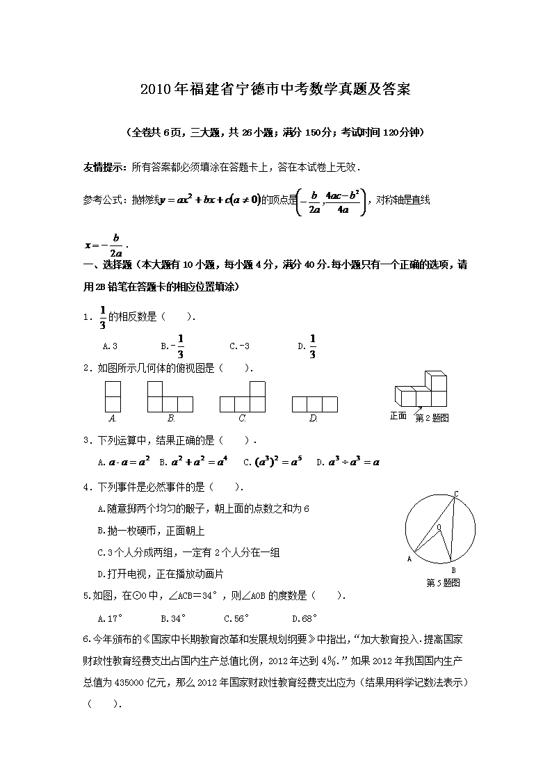 【文档预览】 无忧考网整理发布2010年福建省宁德市中考数学真题及答案(Word版),前五页预览如下:
