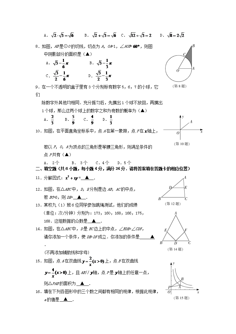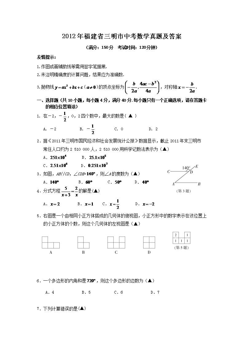 【文档名称】 2012年福建省三明市中考数学真题及答案(Word版).doc