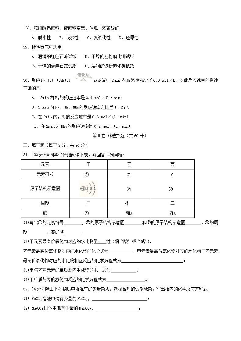 【文档名称】 2018年宁夏普通高中会考化学真题(Word版).doc