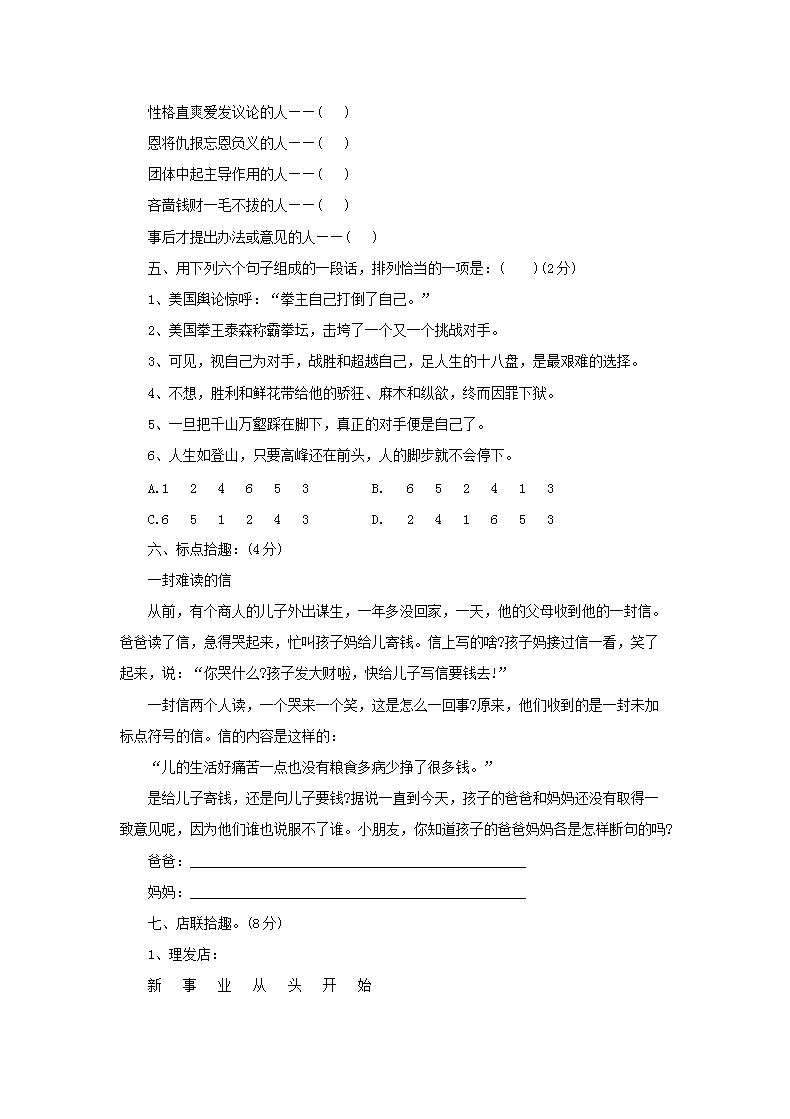 【文档名称】 2014年北京小升初语文真题及答案(Word版).doc