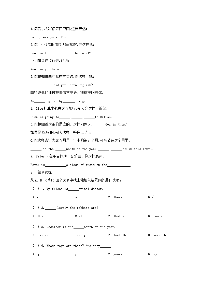 【文档预览】 无忧考网整理发布2017年天津小升初英语真题及答案(Word版),前五页预览如下: