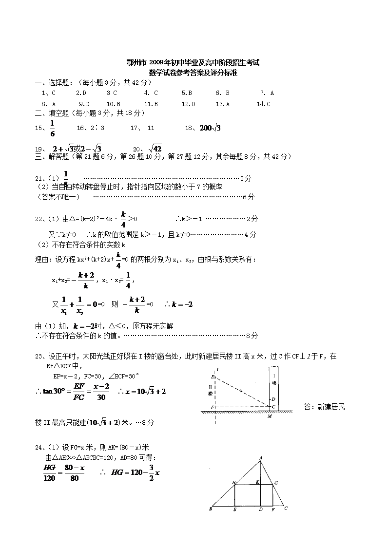【文档预览】 无忧考网整理发布2009年湖北省鄂州市中考数学真题及答案(Word版),前五页预览如下: