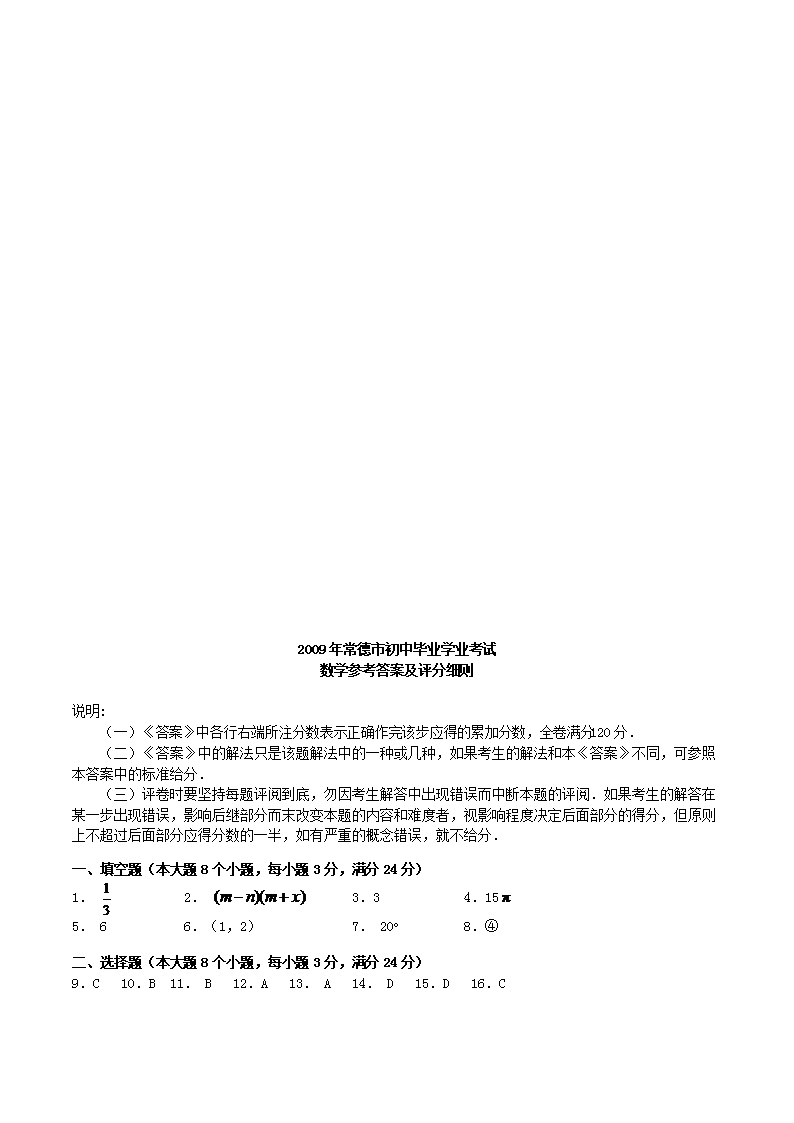 【文档名称】 2009年湖南省常德市中考数学真题及答案(Word版).doc