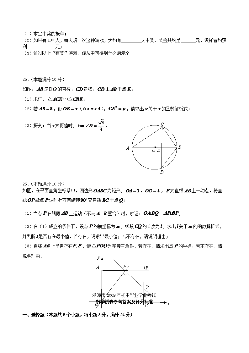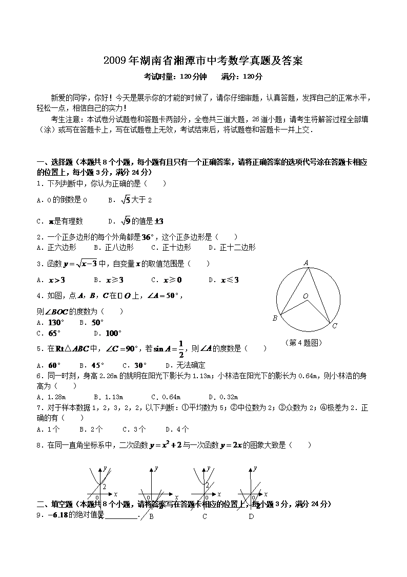 【文档预览】 无忧考网整理发布2009年湖南省湘潭市中考数学真题及答案(Word版),前五页预览如下: