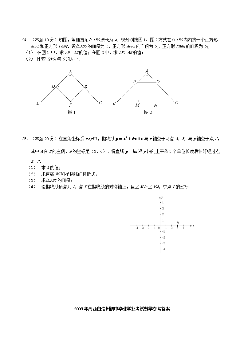 【文档预览】 无忧考网整理发布2009年湖南省湘西自治州中考数学真题及答案(Word版),前五页预览如下: